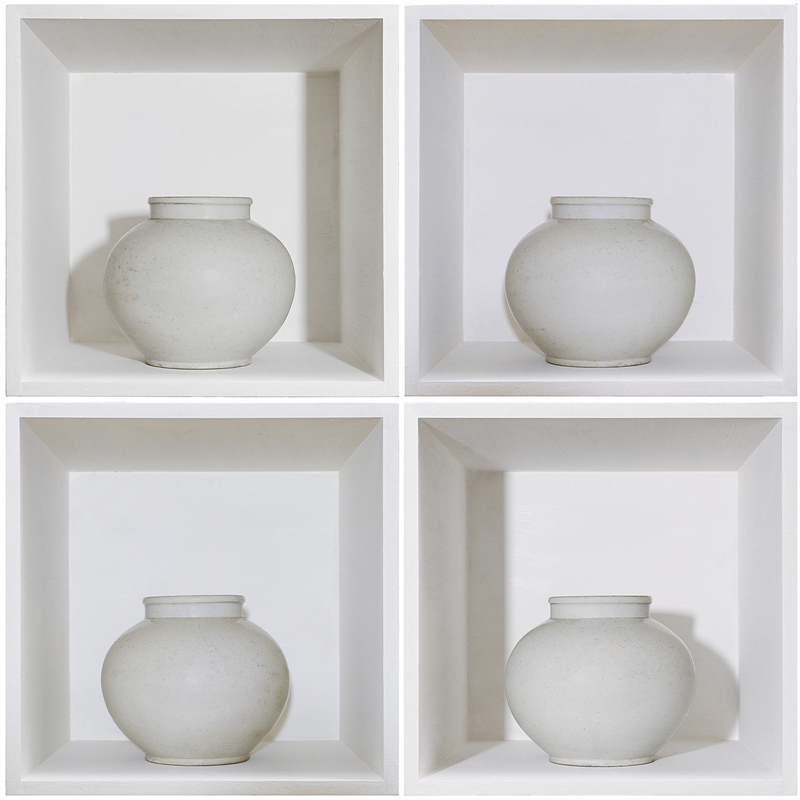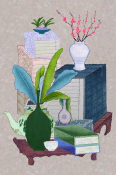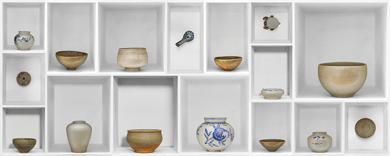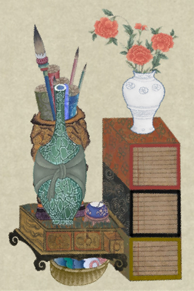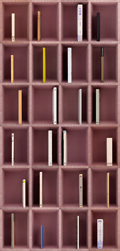 책가도(冊架圖)의 책장은 여러 칸으로 나뉘어져 각각 독립적인 공간으로 볼 수 있다. 이 작은 공간은 책뿐만 아니라 다양한 사물로 채워지며, 각자의 의미를 품는다. 혹자는 민화 책가도가 개인의 정서에 집중하는 서양 회화와 달리 우리 그림은 철저히 내용과 형식을 중시하며 공동체의 가치와 미감을 담아낸다고 말한다. 방 안에는 늘 책장이 놓여 있었다. 시간이 지나며 그 속의 내용물은 바뀌어 갔지만 그들은 파수꾼처럼 나를 지켜주고 있었다. 책장의 책들과 사물은 변하지 않는 듯 변해갔다. 해가 바뀌며 조금씩 빠져나가는 것들과 다시 들어오는 것들로 그 모습은 사뭇 많이 달라져 갔다. 유년 시절의 책장은 또래의 아이들과 유사한 모습의 책들로 나열되기도 했지만, 성장하며 그 공간들은 점점 ‘나의 것’들로 채워지기 시작했다. 이제는 굳이 의도한 것이 아니라면 같은 모습을 한 책장은 존재치 않을 것이다. 책장의 한 공간을 한 개인 혹은 한 가정의 아이덴티티로 바라보기 위해 나는 모든 공간을 정 중앙, 정면에서 바라보았다. 무언가를 과시하려는 듯 놓여있는 사물들…, 책장에 있어야 할 것이 꼭 책일 필요는 없었다. 나는 책장을 통해 사물을 이해하고, 책장을 통해 세상을 바라보기로 했다. 매일의 소소한 풍경, 버려지는 것들과 다시 채워지는 것들, 일상에서 반복 되어지는 삶 속에서 변화해 가는 세상을 책가풍경으로 채워 나간다.